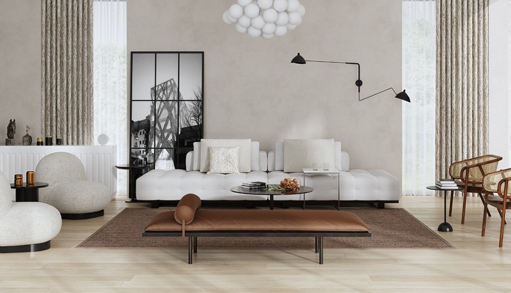 浮華盡去,面料以簡約的線條來消除空間的單調,