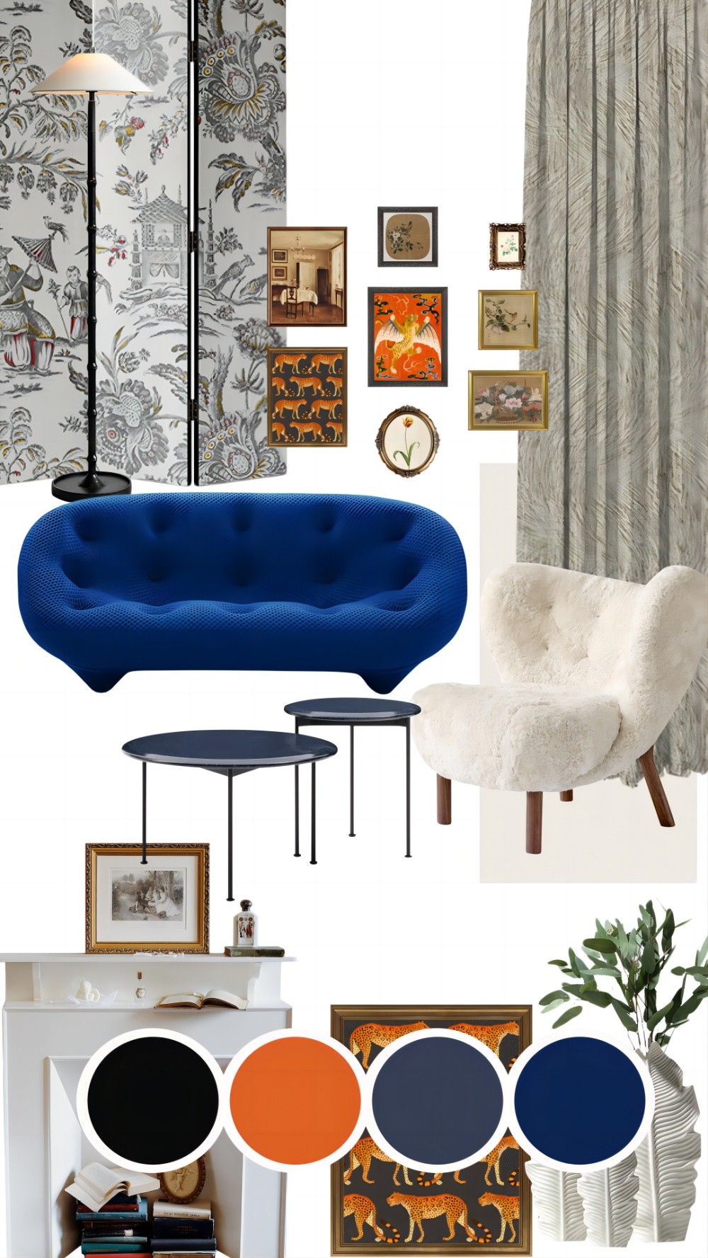 軟裝上可以搭配一些其他具有特色的顏色家具營造復古格調,比如寶石藍的雙人沙發+白色木制細腳單椅,