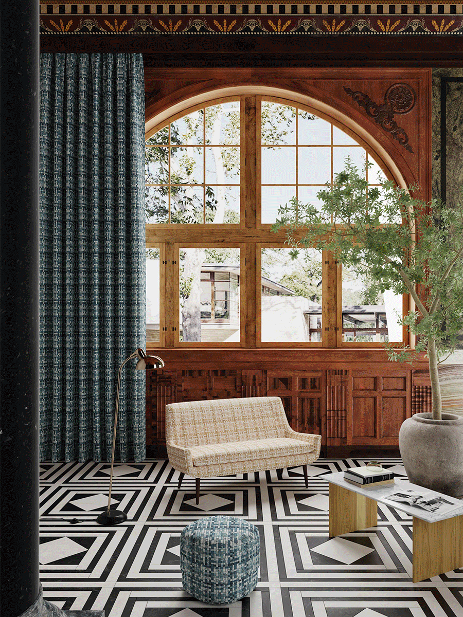 經典的棋盤格紋、千鳥格紋、或是大牌編織感,千百薈設計師應用各種色彩、形狀組合演變,造就了繁多的設計面料,適用于家居整體軟裝。