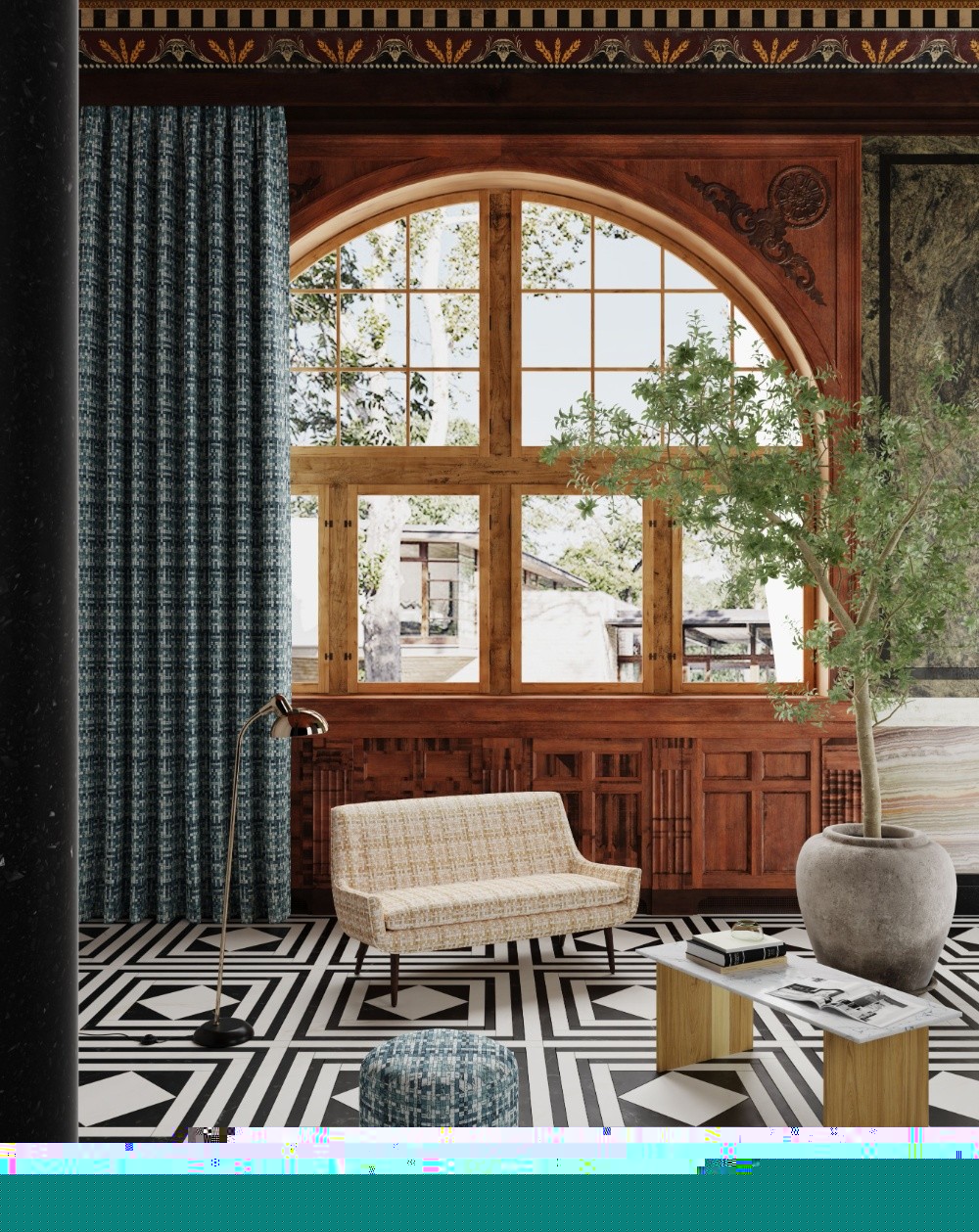 眾多設計元素中,格子作為時尚界的經典元素,它總是有著能讓簡單的造型變得時尚的魔力。在家居設計中,最簡單的實操方法之一就是選擇格紋元素的窗簾。
